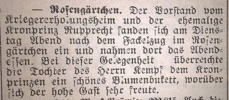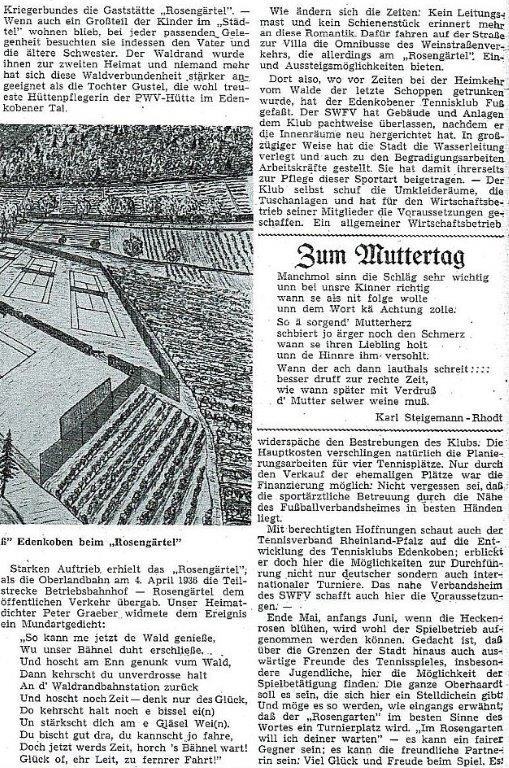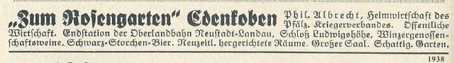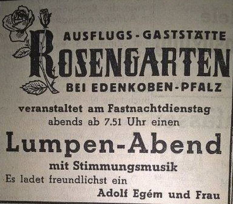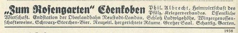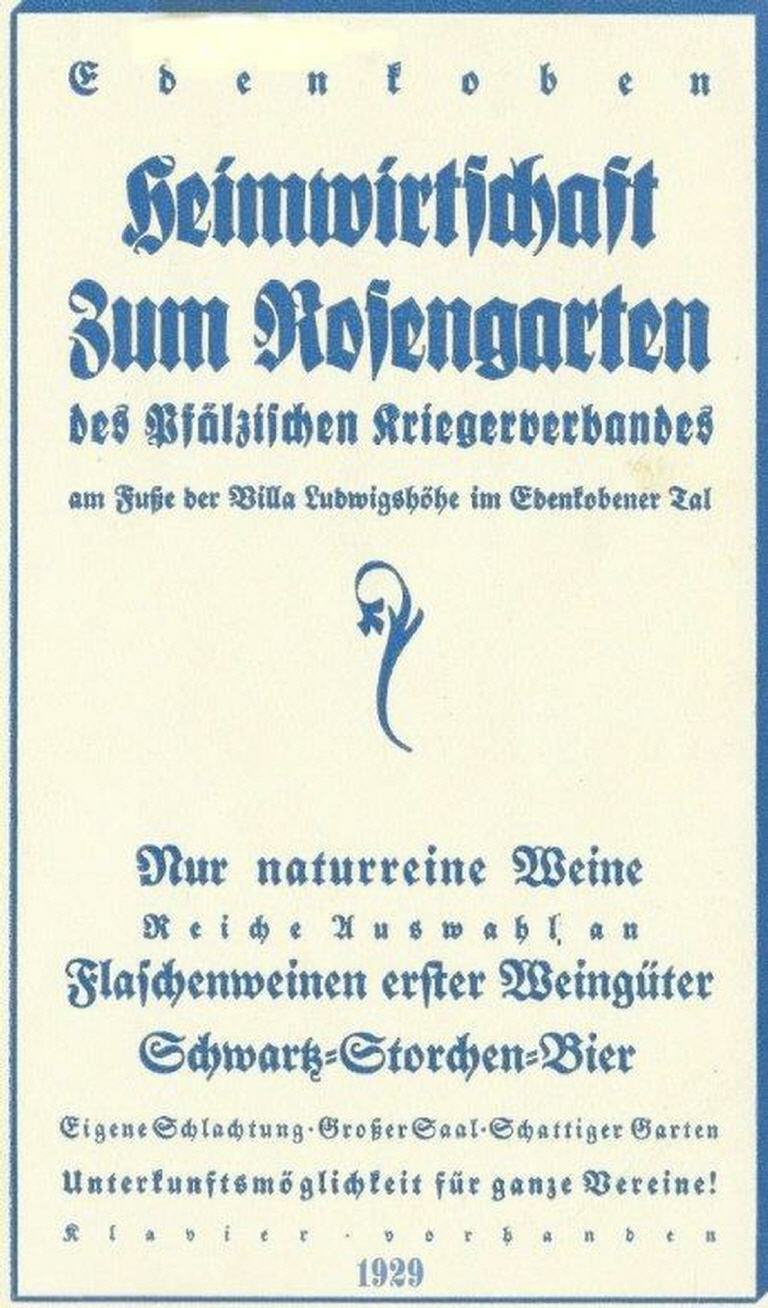 Das "Rosengärtchen" war in dieser Zeit an den Pfälzischen Kriegerverband verpachtet.