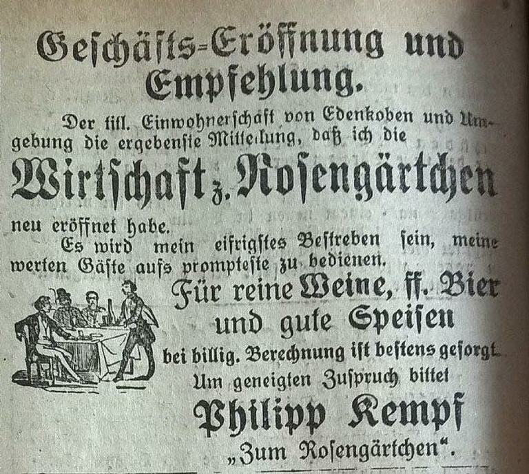 Gastronomisch wurde das Rosengärtchen erstmalig 1896 ! erwähnt