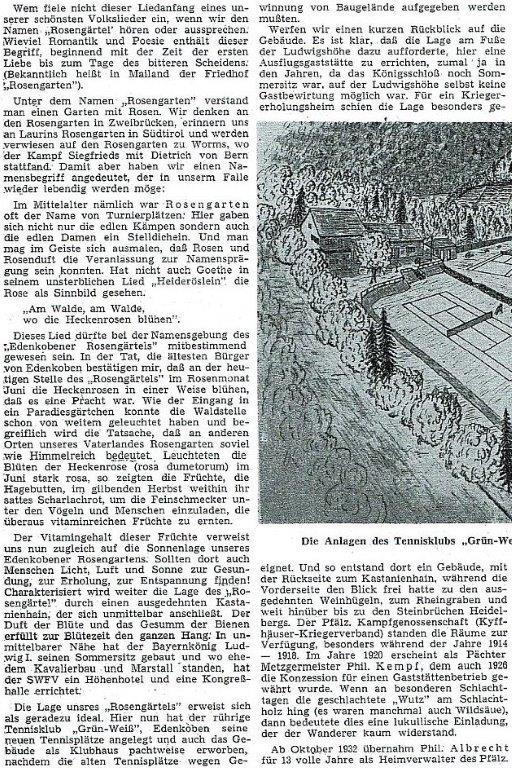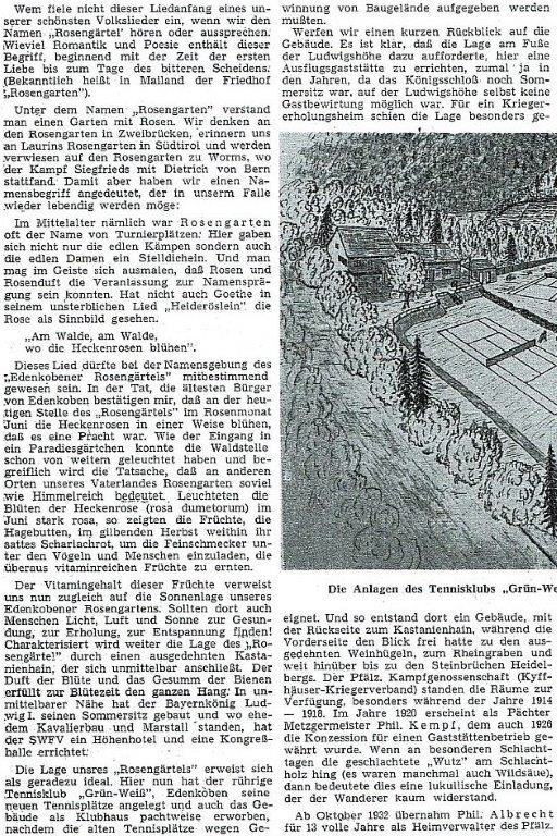 1958 zog der bereits 1929 gegründete TC Grün-Weiß Edenkoben in das "Rosengärtchen".