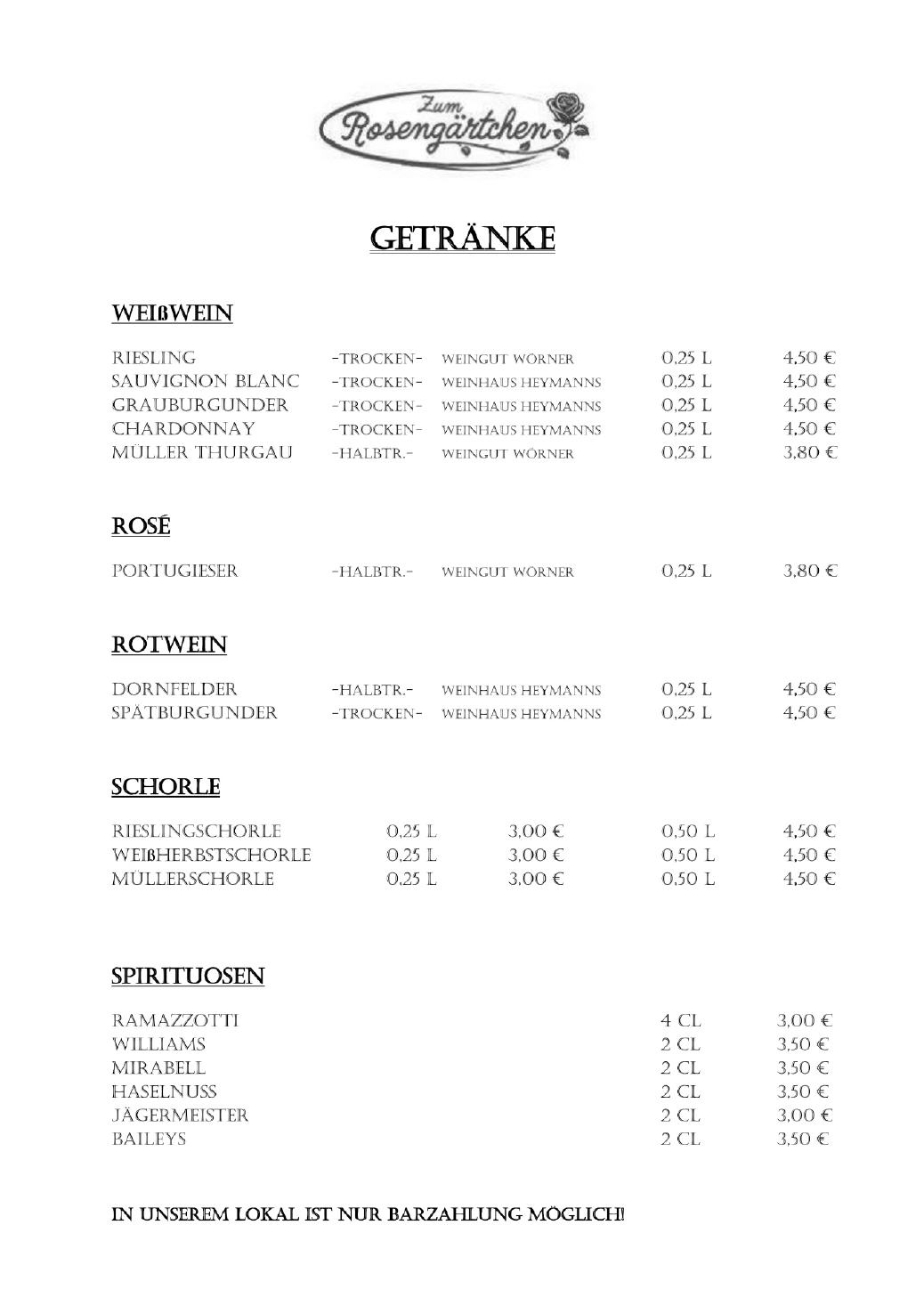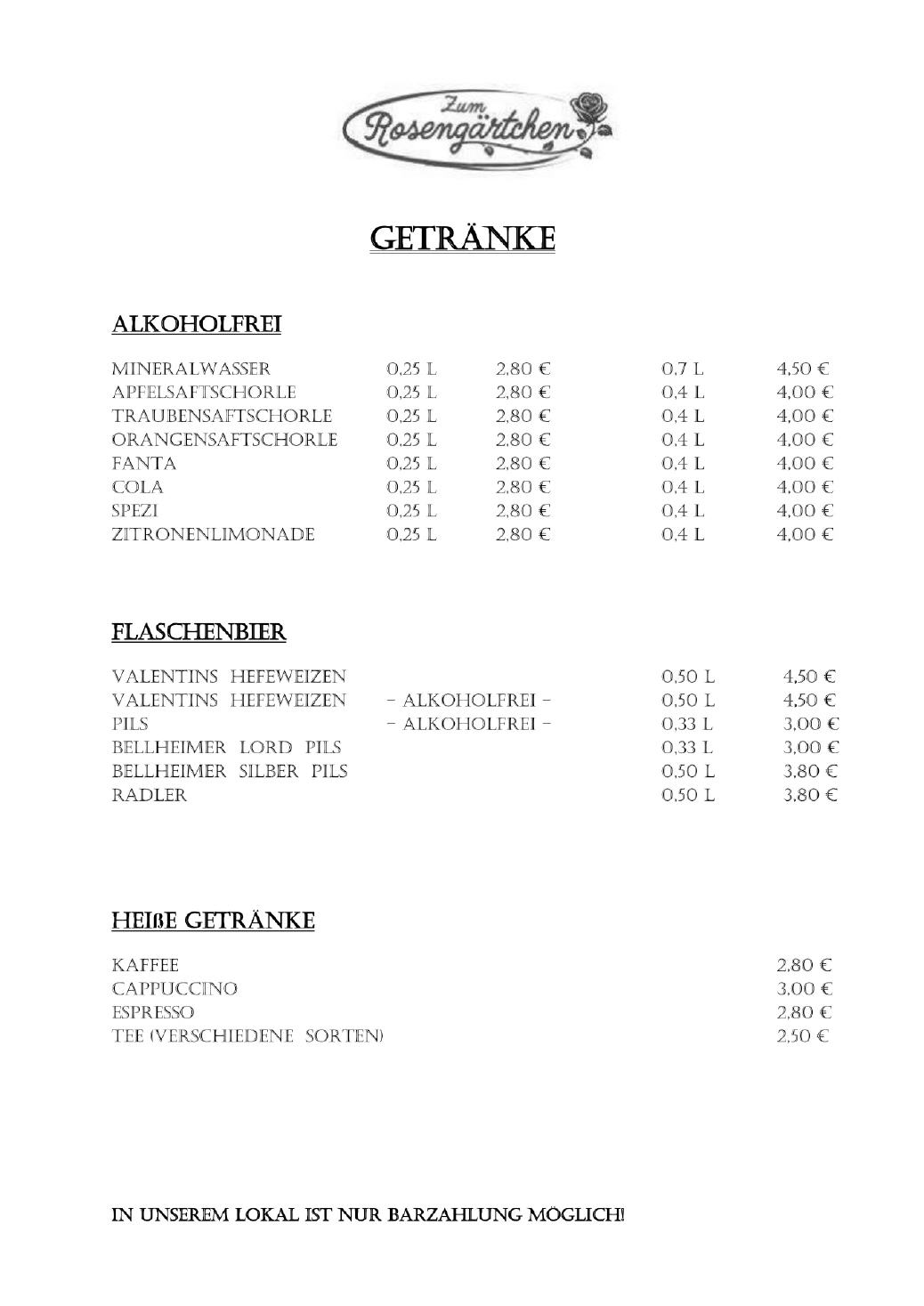 Informationen über Zutaten und Inhaltsstoffe in unseren Speisen und Getränken, die Allergien oder Unverträglichkeiten auslösen können, erhalten Sie auf Nachfrage bei unserem Servicepersonal".